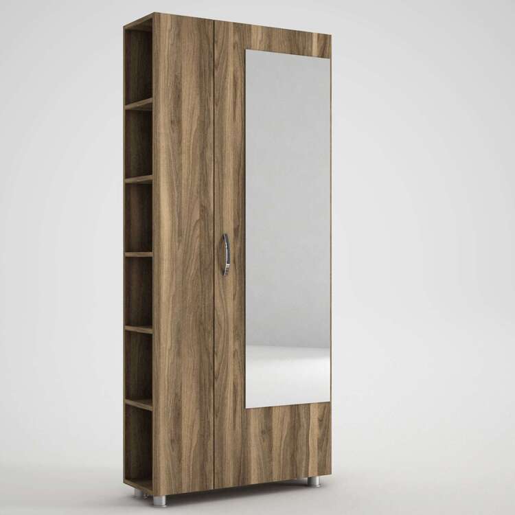Předsíňová sestava nabízí kombinaci skříně, šatníku, věšáků a velkého zrcadla, což zajišťuje dostatek úložného prostoru pro všechny vaše potřeby. Vyrobena z kvalitních materiálů LTD a skla s tloušťkou 18 mm, zaručuje dlouhou životnost a odolnost. Barva ořechu dodává sestavě moderní a přírodní vzhled, který snadno zapadne do každého interiéru.