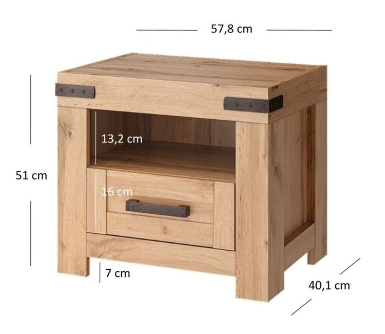 Noční stolek se zásuvkou.