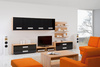 Barevné kombinace s černou se zakládají na kontrastu s jasnými, zářivými a stejně sebevědomými barvami. Světle červená, vínová, sytá azurová nebo trávově zelená jsou schopné konkurovat její dominanci a vytvářet zajímavé kompozice na jejím pozadí. Kontrast bílé a černé se v současnosti uplatňuje v grafickém až kaligrafickém stylu designu tapet. Poměr obou barev se užívá přibližně stejný, ale větší procento bílých ploch působí harmoničtěji. Takovéto kompozici pak sluší výrazně teplá barevnost dřev nábytku, například načervenalá třešeň, výrazně hnědý ořech nebo barevně sytá hnědá exotická dřeva. Pokud bychom chtěli použít nerezové konstrukce a sklo, musíme černou a bílou doplnit třeba dráždivě jahodovou nebo rubínovou červenou a neutrálně šedou.Tak dojde ke zdůraznění krásy a dekadentnosti moderního nábytku. I tak těžká a maximálně neutrální barva má v interiéru nezastupitelné místo a je-li vhodně použita, nepůsobí pocitem prázdnoty, ale jednoty.