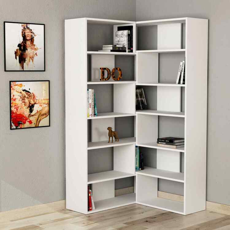 Obohaťte svůj obývací pokoj o jedinečný prvek s MAURICIO no.4. Tento rohový regál v bílém provedení představuje dokonalou kombinaci skandinávské elegance a praktické funkčnosti.