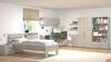 Dvířka a čela skříněk dvířka jsou osazena kvalitními závěsy s dotlumením, dvířka jsou standardně dodávána se svislou kresbou let, čela pak s vodorovnou kresbou let. Zafrézované úchytky jsou usazeny vodorovně na střed šířky dvířek a čel. Vyklápění dvířek zajišťují výklopné mechanismy BLUM Aventhos HK – S. Za příplatek dvířka a výklopy osadíme bezúchytkovým mechanismem TIP ON ( mimo rohových skříní EAR – EJR ).