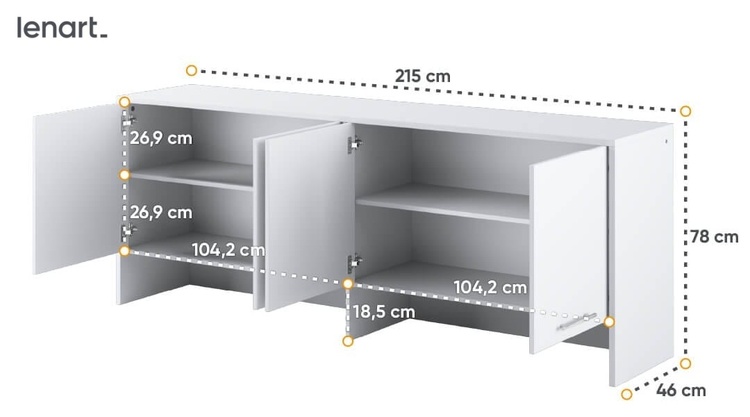 Nádstavec bílý matný k výklopné posteli ze sektoru CONCEPT PRO. Rozměry viz obrázek. Nádstavec má 4 dvířka. Nábytek je vyroben z kvalitního lamina s ABS hranou. Lamino je odolné proti poškrábání, poškození, vlhkosti a vysokým teplotám. Dodáváme v demontovaném stavu.CASA 73005