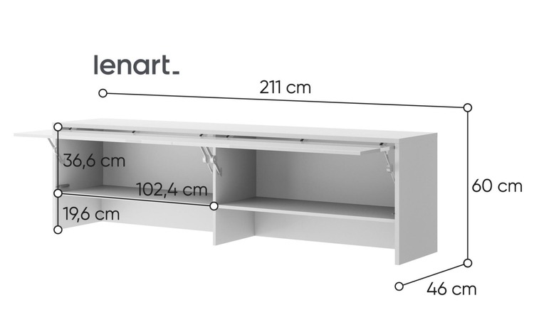 Nádstavec k výklopné posteli široká 140 bílá lesk/bílá mat. Nádstavec má 2 dvířka. Rozměry viz obrázek. Nábytek je vyroben z kvalitního lamina s ABS hranou. Lamino je odolné proti poškrábání, poškození, vlhkosti a vysokým teplotám. Dodáváme v demontovaném stavu.CASA 73026
