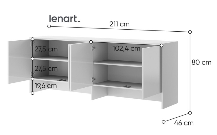Nádstavec k výklopné posteli široká 120 bílá lesk/bílá mat. Nádstavec má 4 dvířka. Rozměry viz obrázek. Nábytek je vyroben z kvalitního lamina s ABS hranou. Lamino je odolné proti poškrábání, poškození, vlhkosti a vysokým teplotám. Dodáváme v demontovaném stavu.CASA 73026