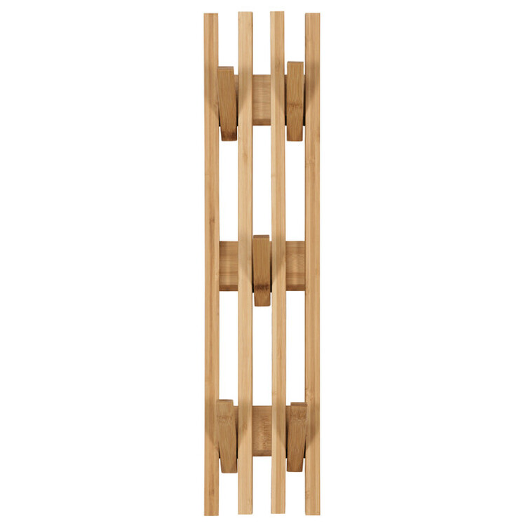 Nástěnný věšák z masivního bambusu v přírodním odstínu nabízí praktické a prostorově úsporné řešení pro zavěšení oděvů či doplňků. Skládací design umožňuje snadné složení věšáku ke zdi, čímž šetří místo v interiéru. Pevné bambusové lamely jsou spojeny tak, aby zajistily stabilitu a dlouhou... více informací o zboží