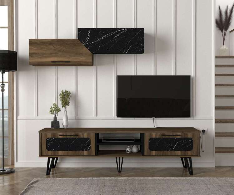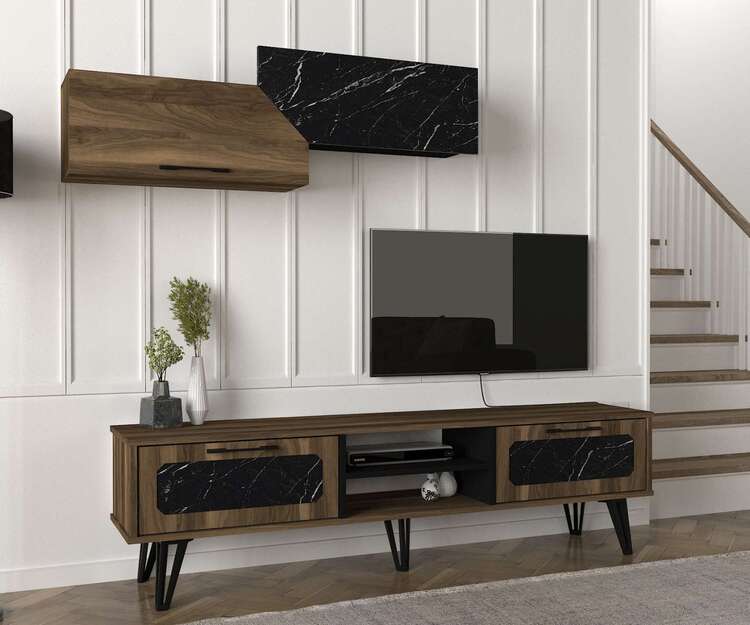 Objevte obývací stěnu, která je synonymem luxusu a elegance. Sestava, navržená pro ty, kdo hledají kvalitu a styl, nabízí perfektní kombinaci ořechového dřeva a mramorových detailů, čímž vytváří exkluzivní prostředí ve vašem obývacím pokoji.