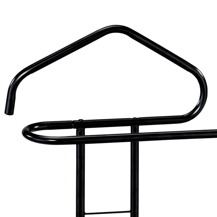 Praktický němý sluha v minimalistickém designu. Konstrukce je z kovových trubek pr. 19 mm. Povrchová úprava je v černém matném práškovém laku. Výška 108 cm Vám umožní zavěšení oblečení i doplňků bez pomačkání. Nosnost stojanu jsou 4 kg, hmotnost necelé 2 kg. I proto je jednoduše přenositelný a lze ho umístit podle momentální potřeby i nálady. Stylem a jednoduchostí se hodí do jakéhokoli interiéru. Využití je nepřeberné, záleží jen na Vás.