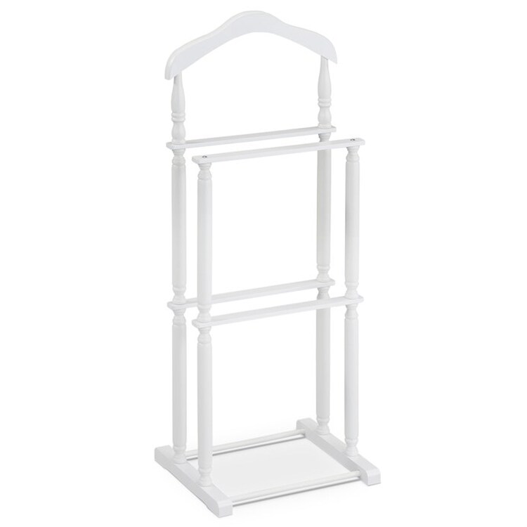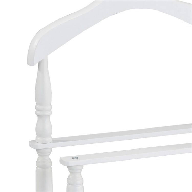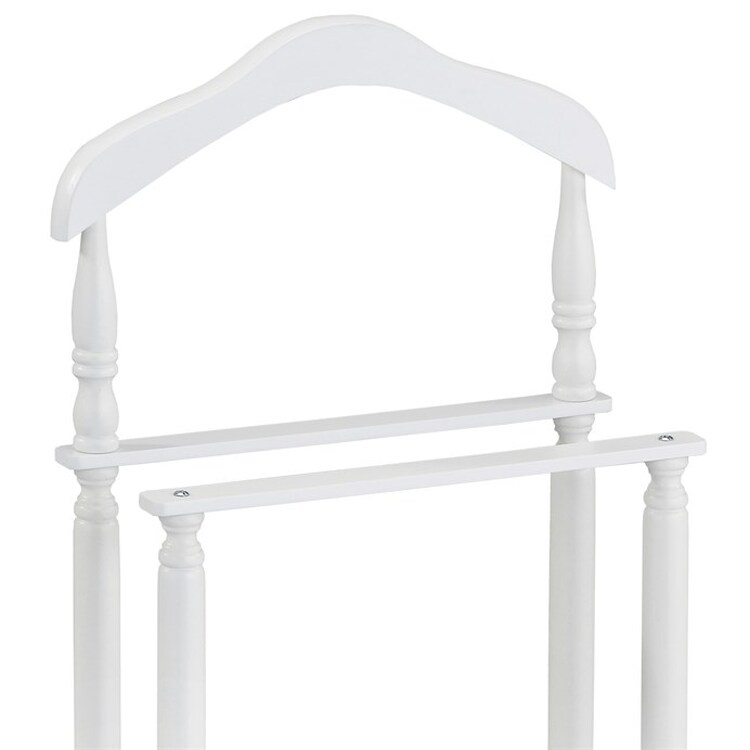 Němý sluha v bílém matném laku je vyroben z masivního kaučukovníku, který zajišťuje pevné a stabilní tělo. Jeho výška 108 cm nabízí dostatek prostoru pro zavěšení oblečení, zatímco spodní část je určena pro uložení kalhot nebo doplňků. Design kombinuje klasické tvary s praktickým využitím, což... více informací o zboží