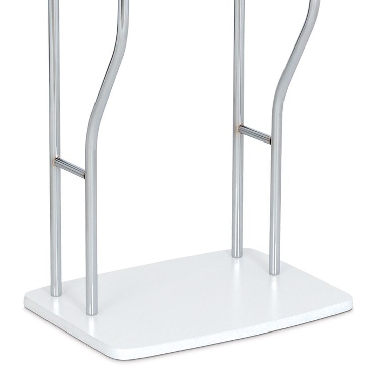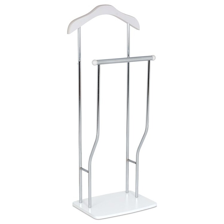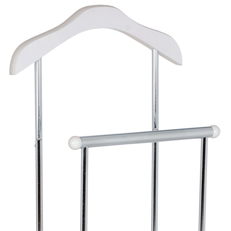 Němý sluha v bílém matném laku z MDF a s chromovanými kovovými prvky nabízí praktické řešení pro uložení oblečení a doplňků. Jeho pevná základna zajišťuje stabilitu, zatímco horní část ve tvaru ramínka umožňuje zavěšení košil, sak či kalhot. Kompaktní výška 108 cm usnadňuje umístění v ložnici... více informací o zboží
