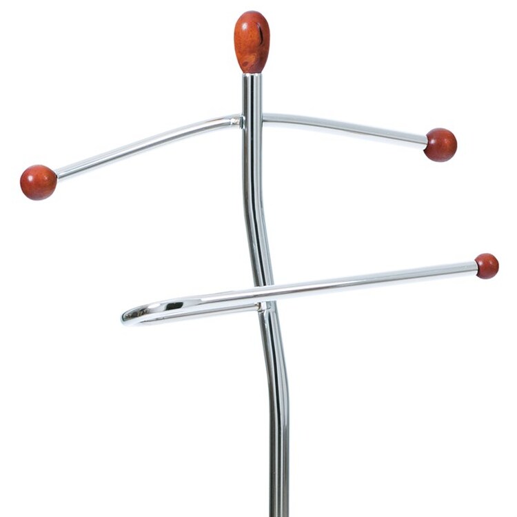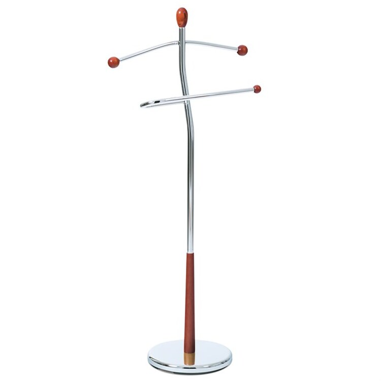 Praktický minimalistický němý sluha v sobě kombinuje prvky z masivního kaučukovníkového dřeva s kovovými nosnými díly v chromované povrchové úpravě. Tento model je v červenohnědém moření, lakovaný kvalitním transparentním lakem. Výška 120 cm Vám umožní zavěšení oblečení i doplňků zcela bez pomačkání. Nosnost stojanu je až 5 kg rovnoměrně rozprostřené zátěže, hmotnost 5 kg. Konstrukce je zakončena kovovou chromovanou podestou se zátěží v černém plastovém pouzdře. Stojan je jednoduše přenositelný a lze ho umístit podle momentální potřeby i nálady. Stylem a jednoduchostí se hodí do jakéhokoli interiéru. Využití je nepřeberné, záleží jen na Vás.