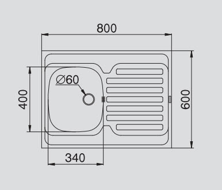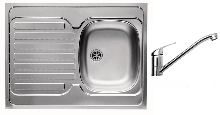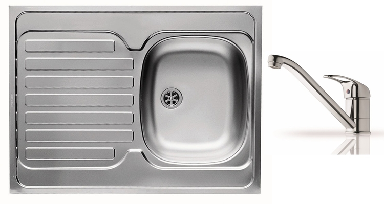 Nerezový dřez se stojánkovou baterií ( sestava ) vyrobený nejmodernější technologií z materiálu Cr Ni 18/10 (DIN 1.4301) největší jakosti ( tloušťka 0,7 mm ). Tato potravinářská ocel s vysokým obsahem chrómu a niklu je nejvhodnější pro výrobu nerezových dřezů, mezi největší přednosti patří odolnost proti korozi i při narušeném povrchu, odolnost proti vysokým teplotám, vysoká životnost a hygiena. Dřez se neloupe, nemůže prasknout a rozbít se. Je recyklovatelný v hutnické výrobě, tím je šetrný k životnímu prostředí. Povrch dřezu je hladký, rozměry dřezu – 60 × 80 cm, rozměr dřezové nádoby 34 × 40 × 15 cm. Dřez je reversibilní (dá se uložit z obou stran). Dřez se přichytává pomocí šroubů zavrtaných do korpusu. Dřez je také celoplošný, pasuje na skříňku o šířce 80 cm a hloubky 45 cm bez nutnosti přidání pracovní desky. Sifon je součástí balení. Součástí sifonu je i přípojka na myčku s kompletním montážním příslušenstvím.CASA 67013+32