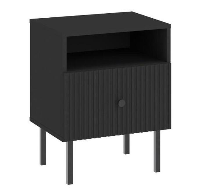 Noční stolek se zásuvkou v elegantním stylu, je vyroben z kvalitní LTD desky v barevném provedení antracit. Přední část nábytku je doplněna dekorem frézovaných dveří. Vysoké kovové nožky nábytku a úchyty jsou v barevném provedení antracit. V naší nabídce naleznete více variant nábytku této... více informací o zboží
