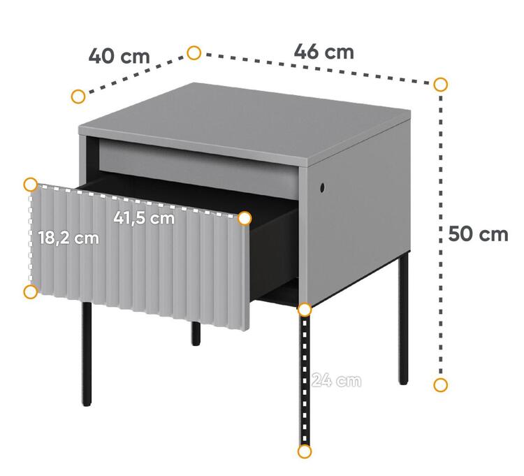 Noční stolek 1S s LED IPOLIS šedá/černá