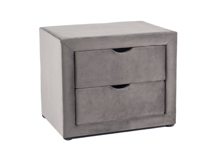 Elegantní čalouněný noční stolek se dvěma zásuvkami. Konstrukce je potažena látkou velvet (Bluvel 14) v šedé barvě. Nožky jsou vysoké 1.5 cm v černé barvě.CASA 12119