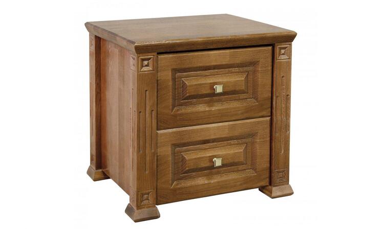 Noční stolek se dvěma zásuvkami je vyroben z masivního dubového dřeva s vyřezávaným dekorem v barevném provedení ořech. Úchyty jsou kovové. V naší nabídce najdete další komponenty této kolekce, které si můžete dokoupit. Dodáváme v demontovaném stavu.CASA 97051