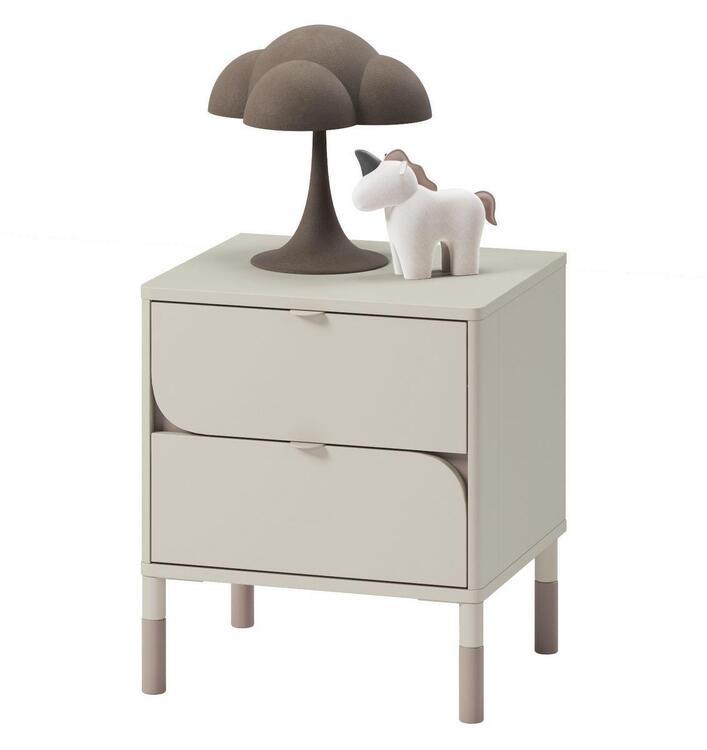 Noční stolek se dvěmi zásuvkami. Nábytek pro teenagery, který díky něžnosti hlavně ocení divky, nabízí moderní a praktické řešení do pokojů. Kombinace kašmírové a lanýžové barvy vytváří elegantní a univerzální design. Vyniká zaoblenými čely, asymetrickým stylem a štíhlými nožkami, které... více informací o zboží