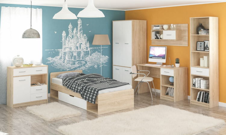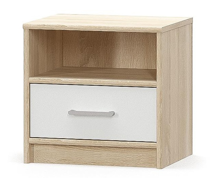 Noční stolek s praktickou zásuvkou. Nabídka komponentů této sektorové řady umožňuje sestavit si nábytek do obývacího, dětského nebo studentského pokoje dle vlastních představ. Dodáváme v demontovaném stavu.CASA 97012