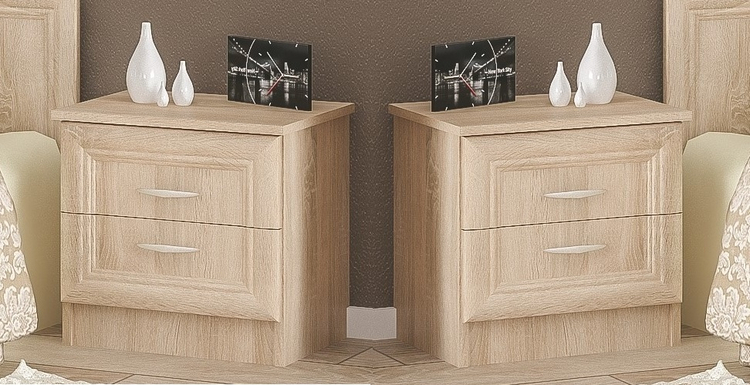 Noční stolky sada 2 ks z ložnicové řady. Jemné orámování na čele nábytku dodá Vašemu interiéru eleganci. Noční stolky jsou vyrobeny z kvalitní LTD desky s MDF prvky v barvě dub sonoma. Nabídka komponentů této sektorové řady umožňuje sestavit si nábytek do ložnice nebo studentského pokoje dle... více informací o zboží