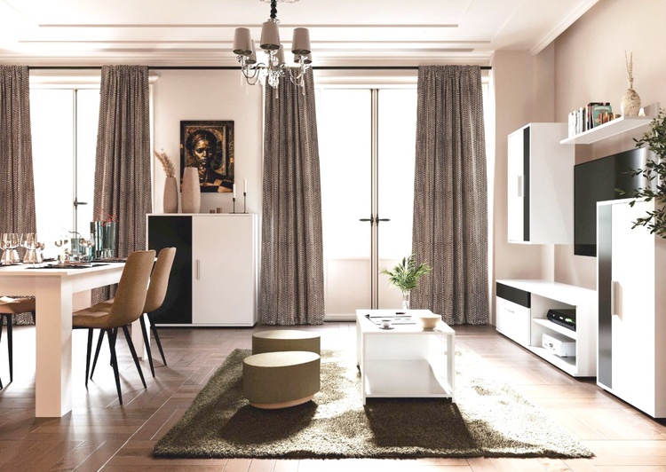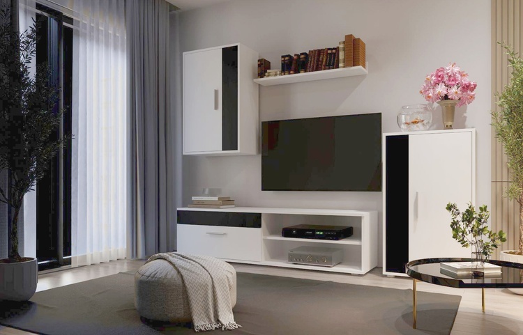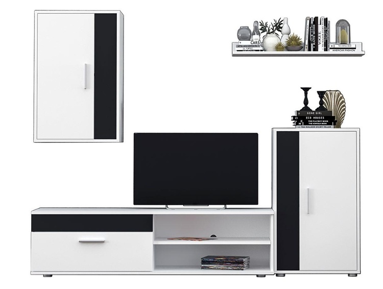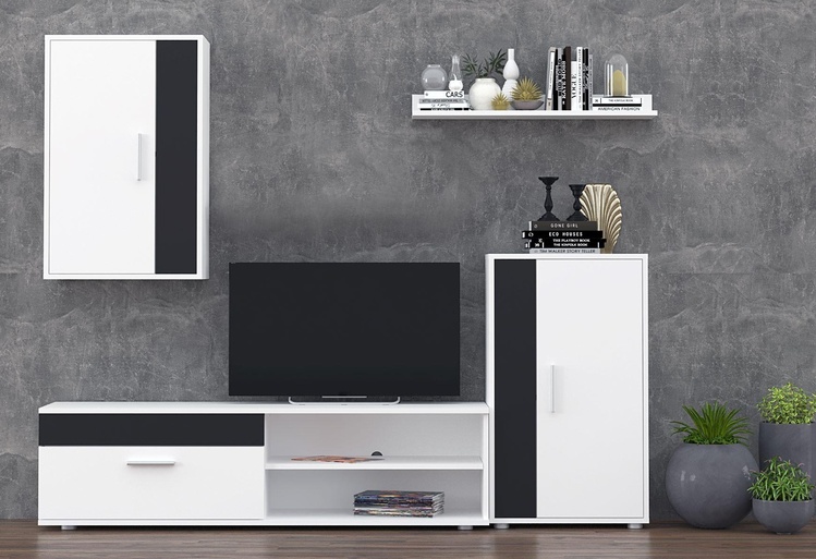 Představujeme obývací stěnu – dokonalou kombinaci funkčnosti a minimalistického designu. Navržena tak, aby povýšila váš obytný prostor svou elegantní estetikou a praktickými úložnými řešeními. Specifikace: Barevné provedení: bílá/černá. Perfektní pro současné interiéry, nabízející čistý a uklizený vzhled. Dostatečný úložný prostor. Odolná konstrukce je vyrobena z kvalitních LTD 16 a 22 mm. Jednoduchá montáž. Dodáváme v demontovaném stavu.
