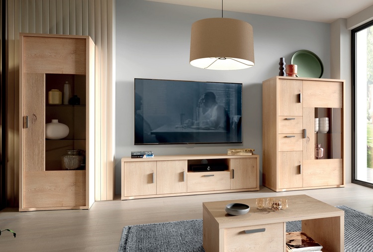 Elegantní a praktická obývací stěna v dekoru dub krémový přináší