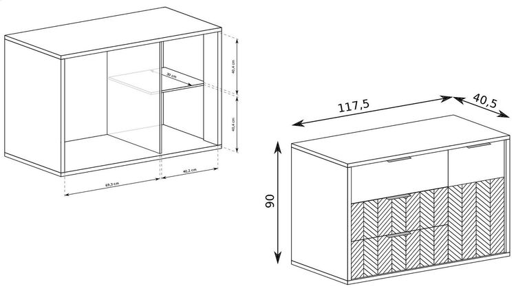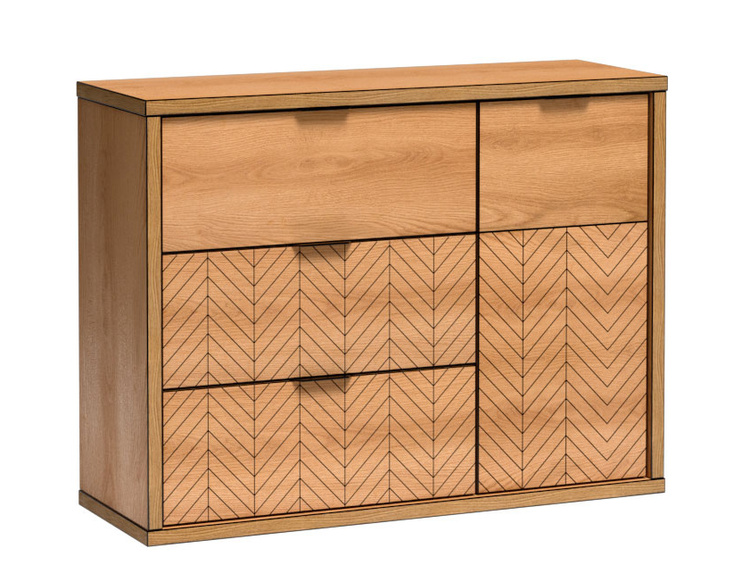 Charakteristickým znakem nábytku je jeho stylové a elegantní zdobení na přední části.