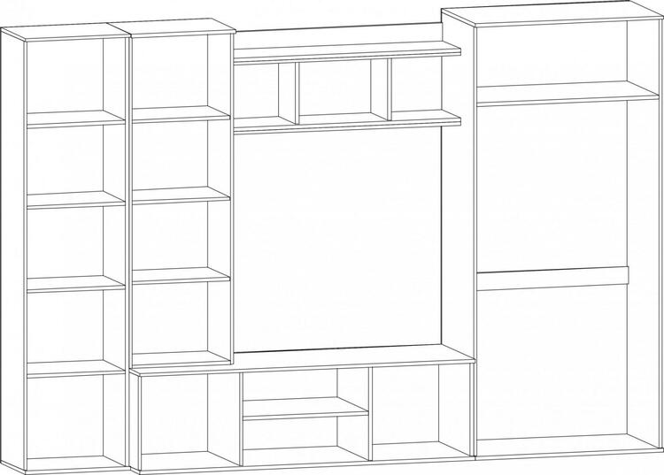 Sestava do obývacího pokoje v moderním provedení je vyrobena z kvalitní LTD desky v barevné kombinaci wenge/dub april. Sestava se skládá z televizního stolku, nad kterým je umístěna police. Po obou stranách jsou vysoké skříně s policemi, kdy jedna z nich je prosklená a slouží jako vitrína. Úchyty jsou kovové. Dodáváme v demontovaném stavu.CASA 97050