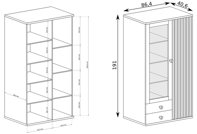 Obývací sestava s netradičním provedením detailu dvířek s lamelami. Kolekce nábytku v sobě spojuje jednoduchost, originální vzhled a funkčnost. Barevné provedení je v kombinaci dub artisan/černá mat. Sestava se skládá z těchto položek (Š x V x H cm) – vitrína dvoudveřová se zásuvkami (86,4 ×... více informací o zboží