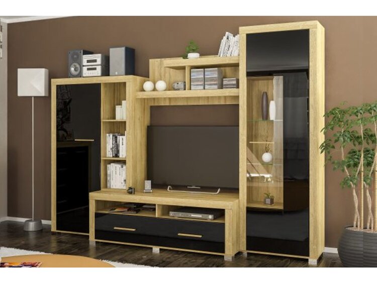 Zachovává spojení s přírodními barvami a přitom využívá moderní lesk v černé barvě. Sestava je vhodná i do menších prostor.