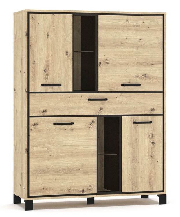 Obývací sestava v moderním provedení dekoru přírodního dřeva. Nábytek je vyroben z kvalitní LTD desky v barevné kombinaci dub artisan/wenge tmavá. Sestava se skládá z (ŠxVxH): komoda čtyřdveřová (117,4 × 157,6 × 41,2 cm),televizní stolek (153,6 × 57,8 × 41,2 cm) a police (140 × 29,6 × 24,8 cm). Dodáváme v demontovaném stavu.CASA 97033