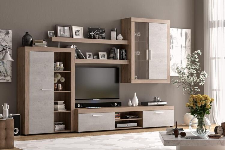 Sestava do obývacího pokoje v moderním provedení je vyrobena z kvalitní LTD desky v barevném provedení dub tabaco/beton. Sestava se skládá z těchto položek (Š x V x H cm):