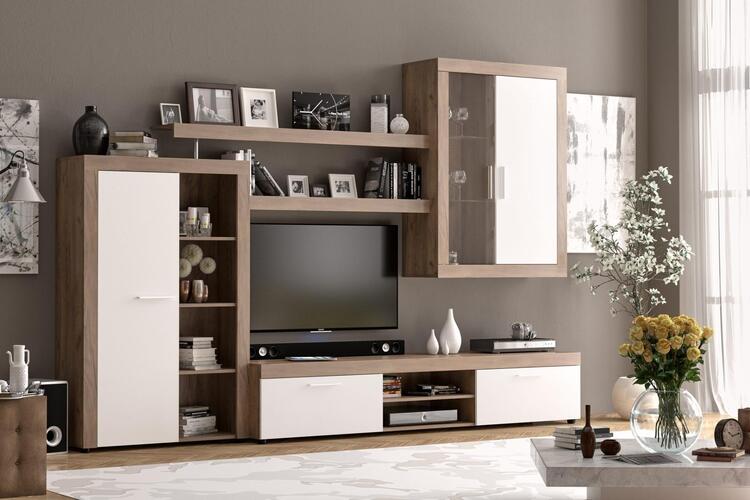 Sestava do obývacího pokoje v moderním provedení je vyrobena z kvalitní LTD desky v barevném provedení dub tabaco/bílá. Sestava se skládá z těchto položek (Š x V x H cm):