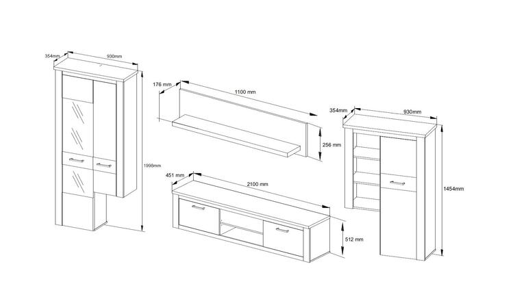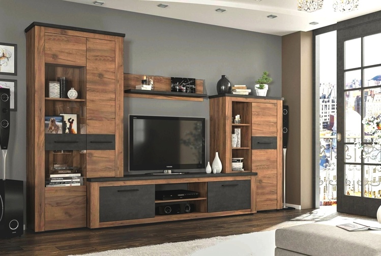 Moderní obývací stěna, která si zakládá na nejnovějších trendech bydlení. Nábytek je vyroben z kvalitní desky LTD v barevném provedení dub tabaco/matera. Sestava se skládá ze dvou vitrín, televizního stolku a police a prodává se pouze jako sestava. Prostor pro televizi je – výška 91 cm, šířka... více informací o zboží