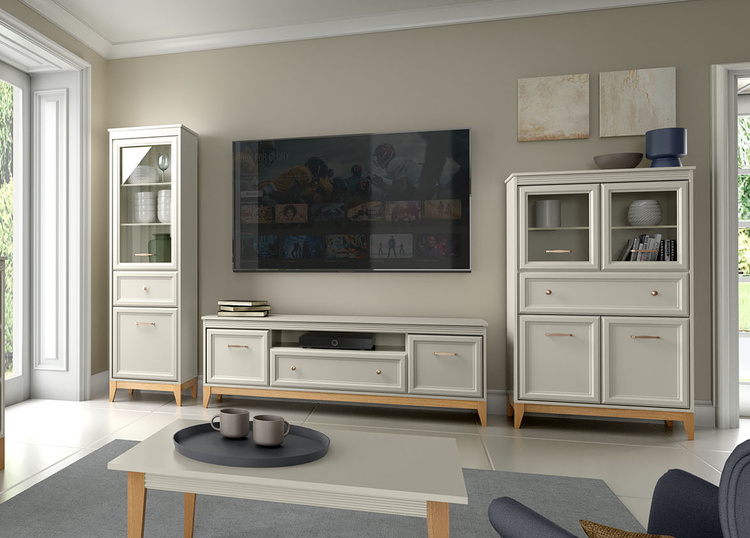televizní stolek. Kvalitní výsuvy (soft close) a panty s tichým