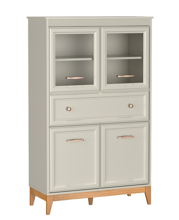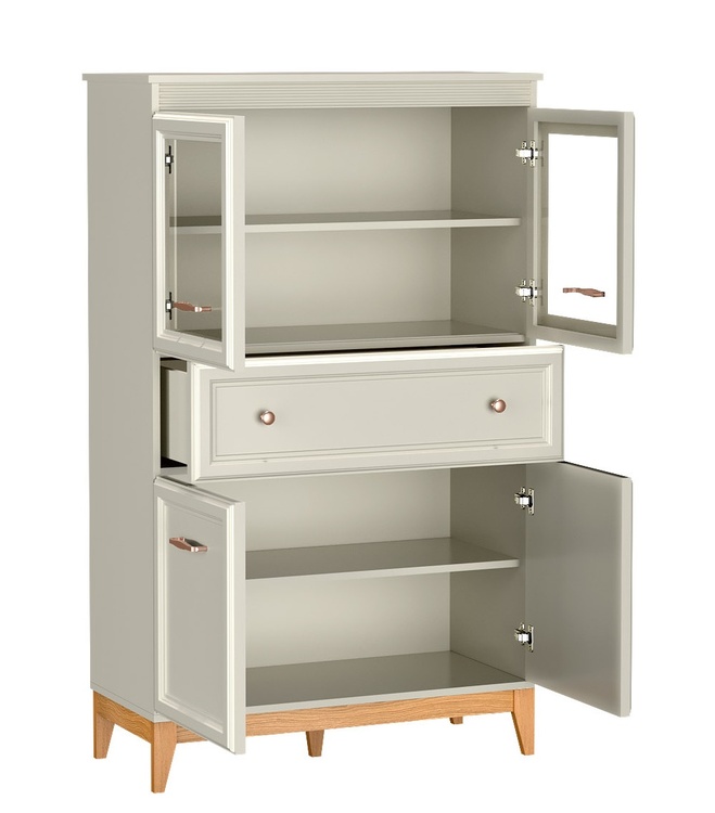 Sestava se skládá – jednodvéřová vitrína, dvoudveřová vitrína a