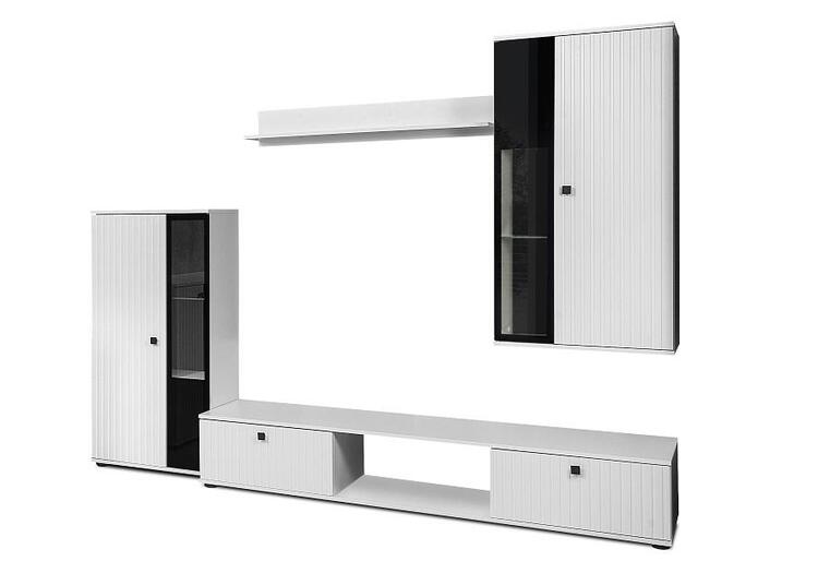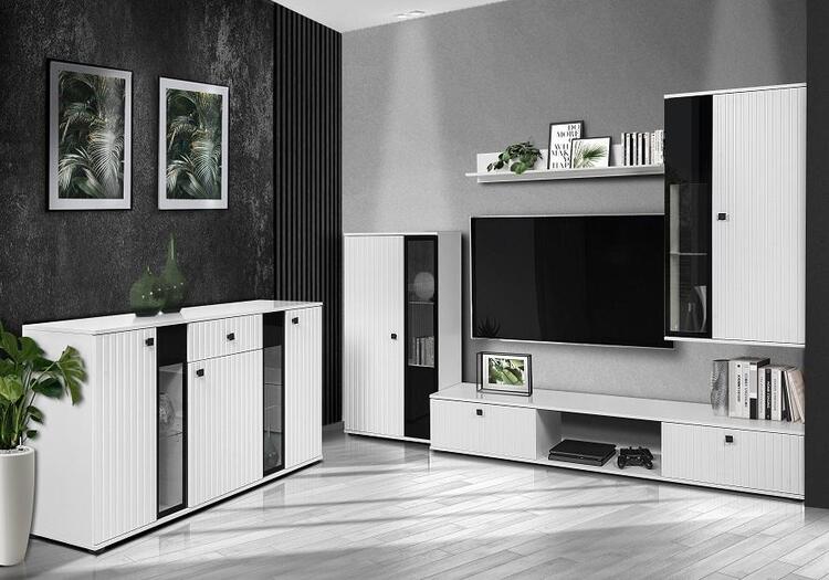 Moderní obývací stěna, která si zakládá na nejnovějších trendech bydlení. Nábytek je vyroben z kvalitní desky LTD v barevném provedení bílá. Sestava se skládá ze dvou vitrín, televizního stolku a police a prodává se pouze jako sestava. Prostor pro televizi je – výška 91 cm, šířka 132 cm.... více informací o zboží