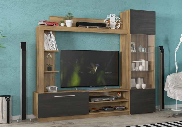 Moderní obývací stěna, která si zakládá na nejnovějších trendech bydlení. Nábytek je vyroben z kvalitní LTD. Korpus je v barvě dub baroko, dvířka jsou v barvě nothern tree. Tato stěna se prodává jako sestava. Ve vitríně jsou skleněné police. Prostor pro televizi je – výška 94,6 cm, šířka 120,7... více informací o zboží