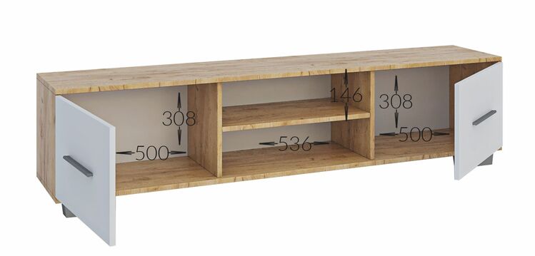 Moderní obývací stěna vhodná i do menších bytů. Tato sestava je vyrobena z kvalitního lamina. Sestava se skládá ( šířka/výška/hloubka ) – TV stolek ( 160 × 39 × 38 cm ),nástěnná skříňka ( 60 × 67 × 22 cm ),komoda ( 60 × 89 × 30 cm ) a police ( 90 × 19 × 19 cm ). Korpus a část předních dvířek... více informací o zboží