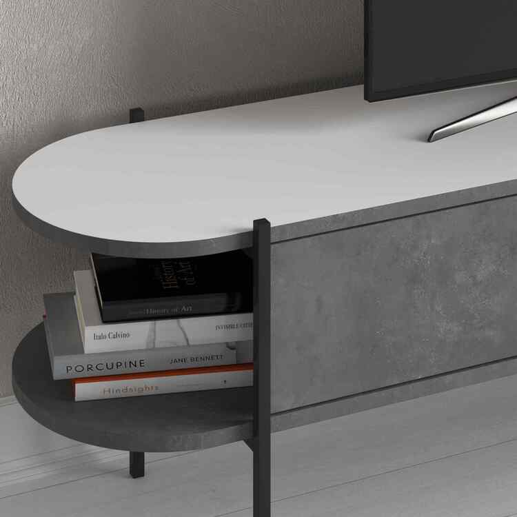 TV Stolek: Loftový styl v retro šedé a bílé kombinaci