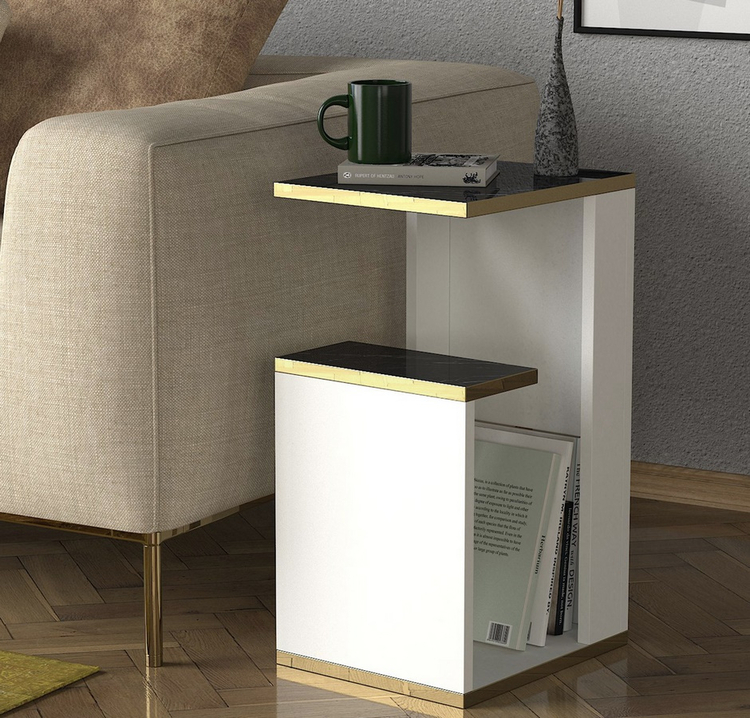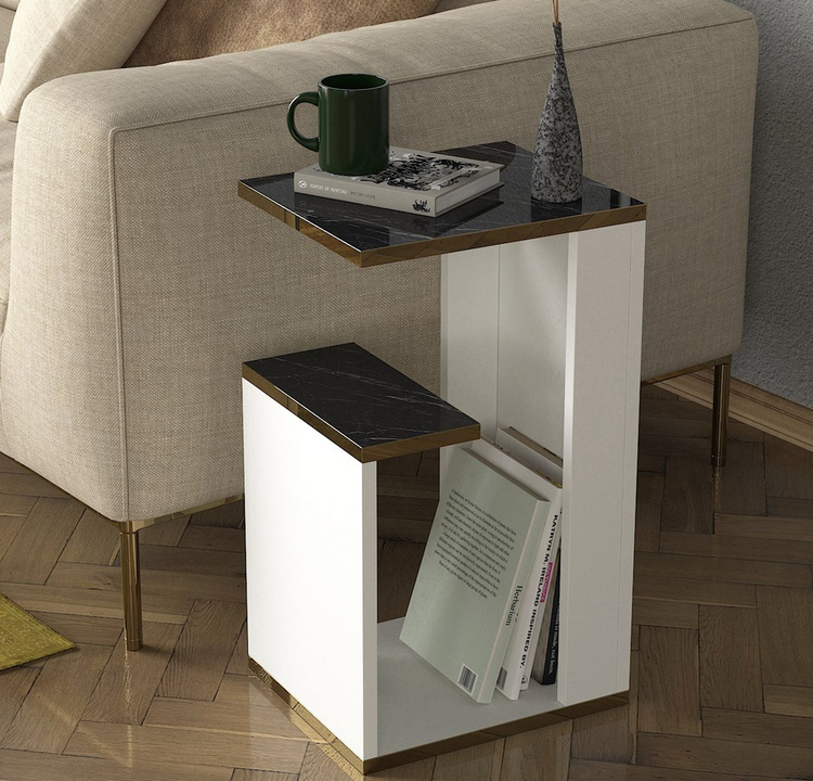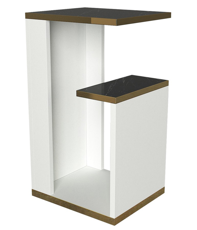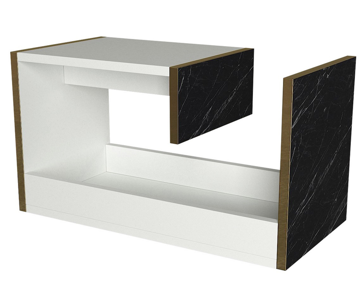 Odkládací příruční stolek je vyroben z kvalitního lamina o tl.18 mm hraněné PVC páskou, odolného proti poškrábání v kombinaci barev matná bílá/marble (černý mramor). Lze použít na výšku nebo na šířku jako stolek konferenční. Dodáváme v demontovaném stavu.CASA 28061