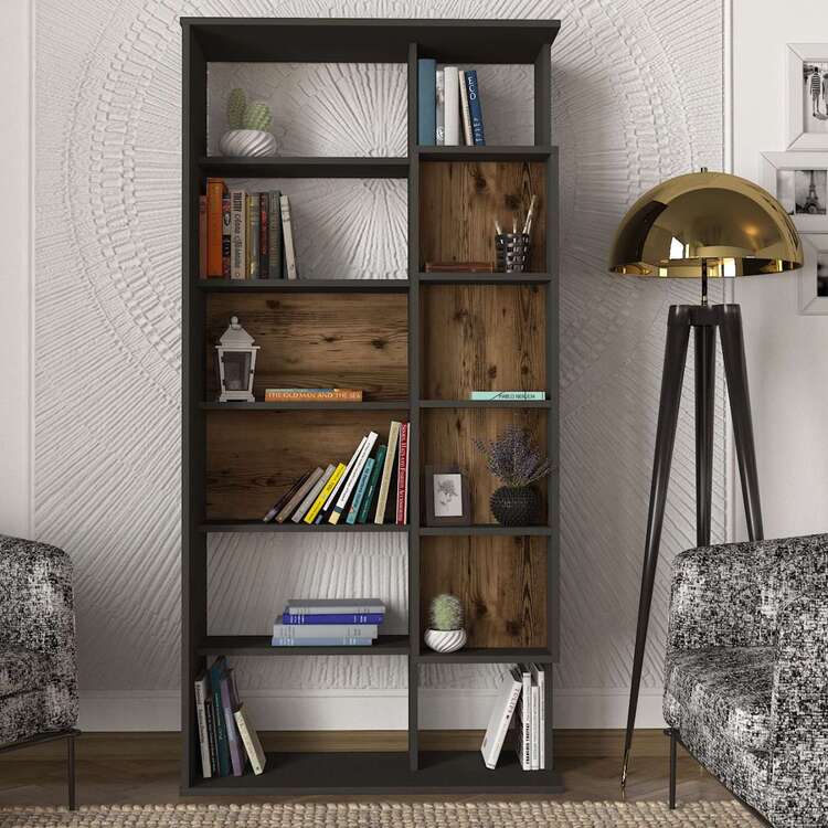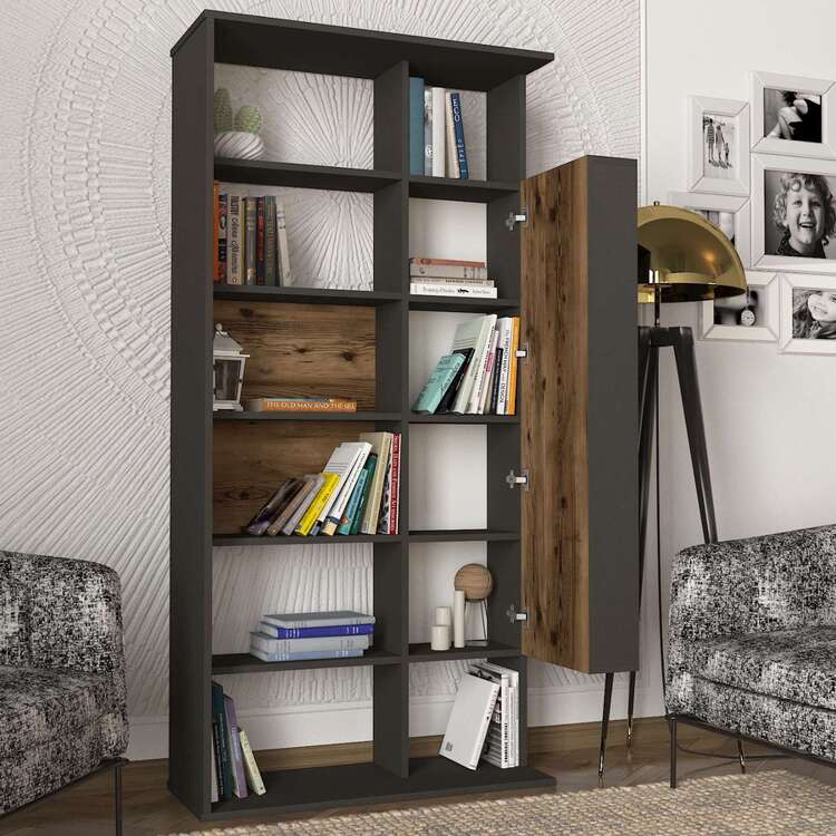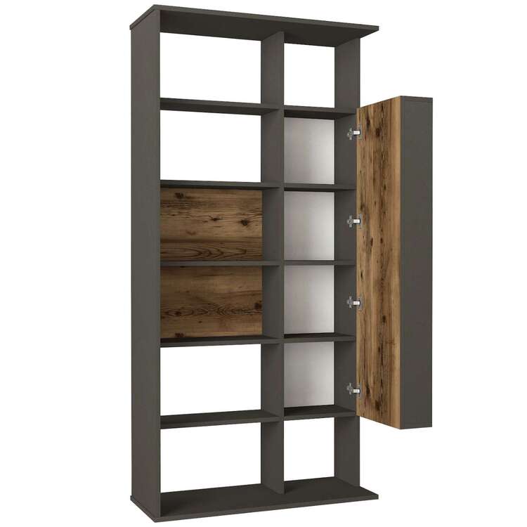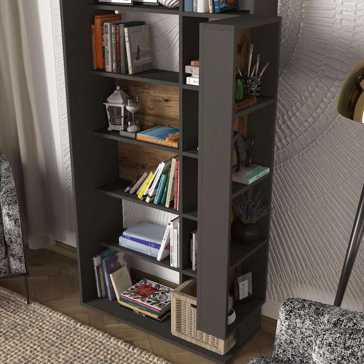 Regál vyniká svým moderním a praktickým designem, který se skvěle hodí do jakéhokoliv interiéru. Pět pevných polic poskytuje dostatek úložného prostoru pro knihy, dekorace či kancelářské potřeby. Kombinace antracitové a ořechové barvy dodává regálu elegantní vzhled. Robustní LTD materiál o tloušťce 18 mm zajišťuje dlouhou životnost a stabilitu tohoto regálu.