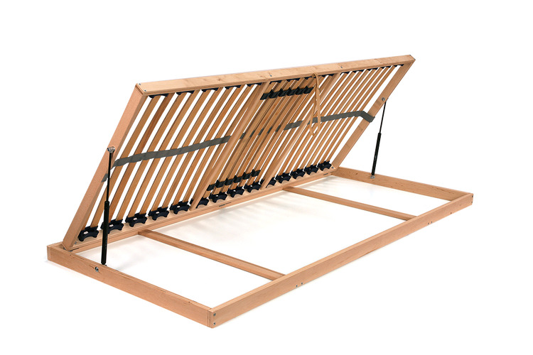 • pevný lamelový rošt s výklopným systémem pro přístup do úložného prostoru z boku pomocí vzduchových pístů