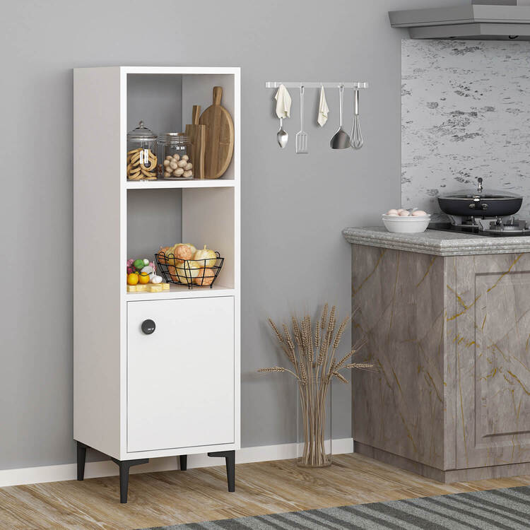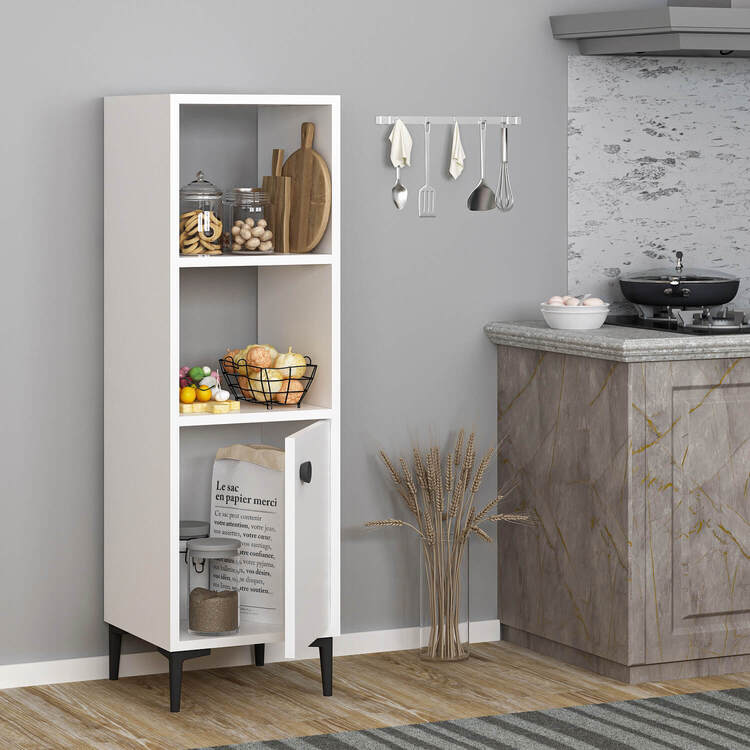Skříňka přináší do vašeho obývacího pokoje čistý a funkční skandinávský design. Kombinace skříňky a regálku poskytuje dostatek úložného prostoru pro vaše knihy, dekorace nebo elektroniku, a zároveň dodává interiéru moderní vzhled.