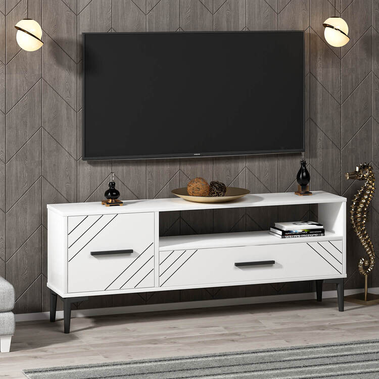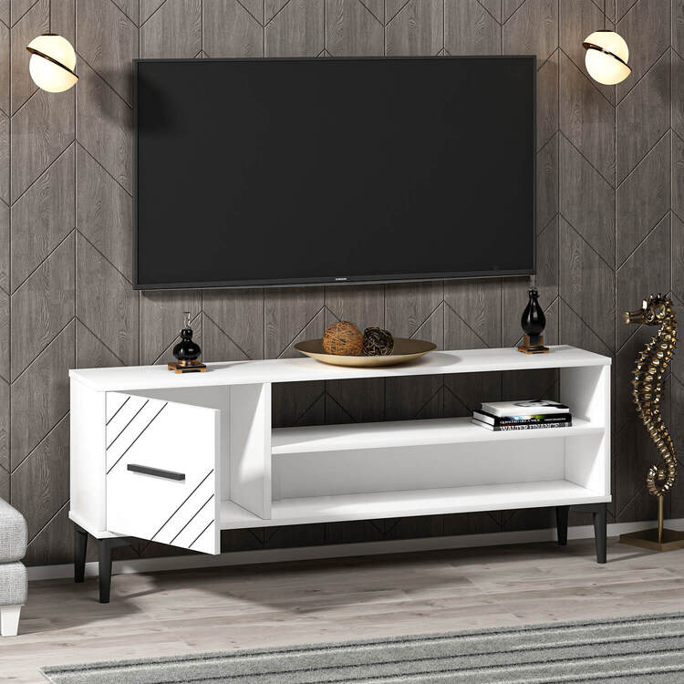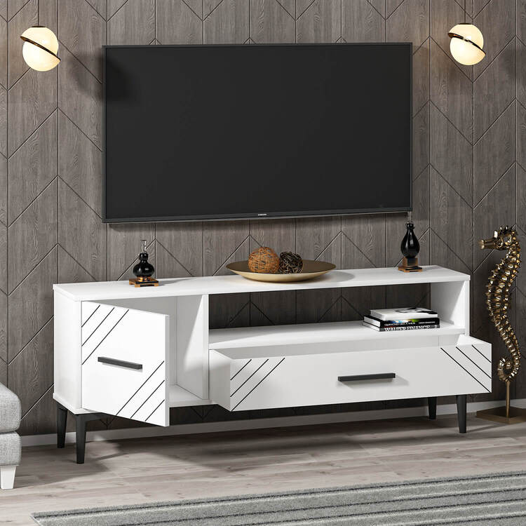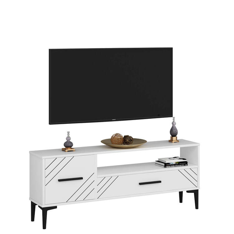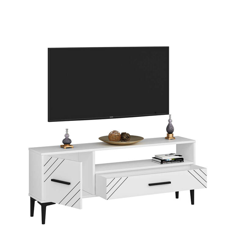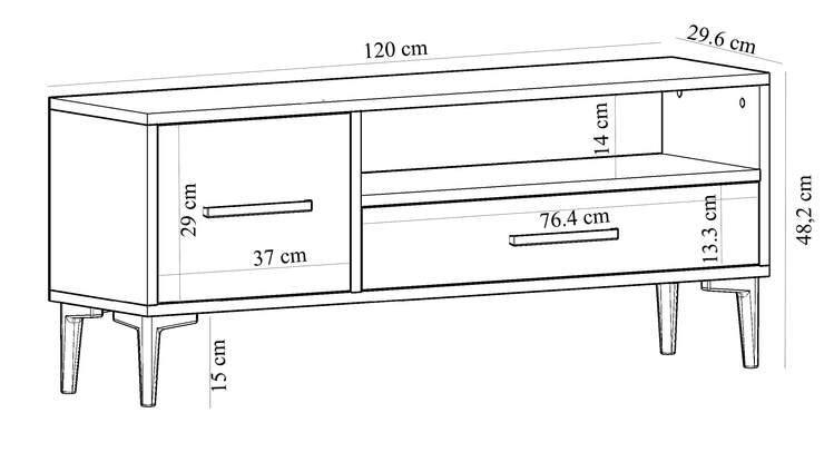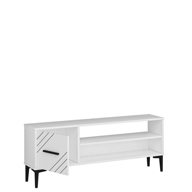 Vyroben z kvalitního LTD materiálu s tloušťkou 18 mm, TV stolek je zárukou pevnosti a dlouhé životnosti. Stolek je vybavenskříňkou s jedněmi dvířky a jednou zásuvkou, což zajišťuje dostatečný prostor pro uložení vašich multimediálních zařízení a dalších potřebností. Plastovéúchytky umožňují snadné otevírání a zavírání, zatímco jeho minimalistický design se hodí do každého moderního interiéru.