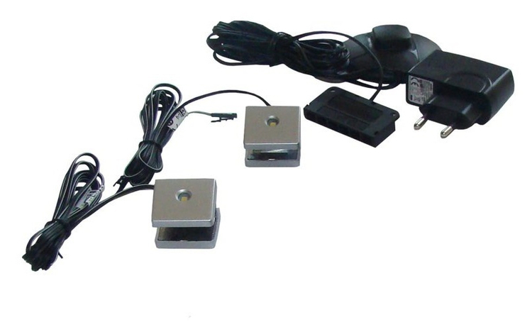 Osvětlení skleněných polic vitríny obsahuje: 2 x světelný bod (neutrální, bílé, LED),3 směry šíření světla – nahoru, dolů a na polici, 1 x transformátor, dotykový spínač pro desku.CASA 75001