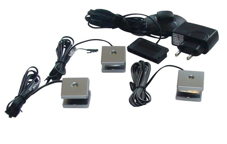 Osvětlení skleněných polic vitríny obsahuje: 3 x světelný bod (neutrální, bílé, LED),3 směry šíření světla – nahoru, dolů a na polici, 1 x transformátor, dotykový spínač pro desku.CASA 75001