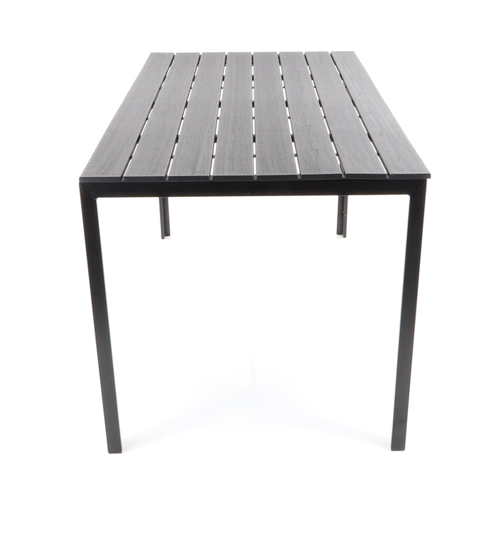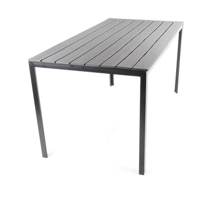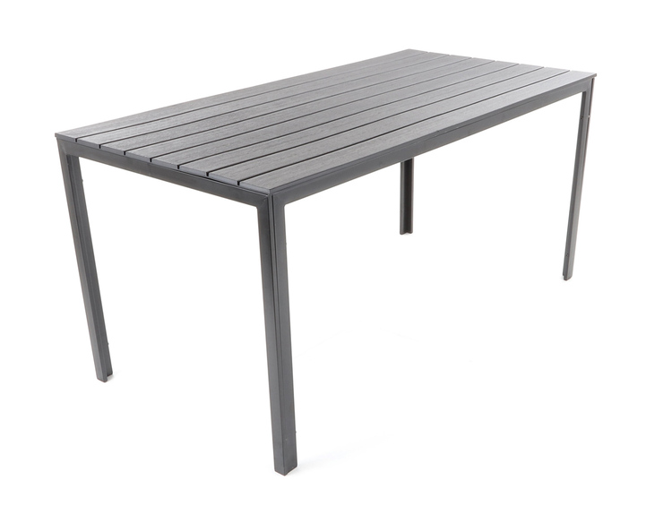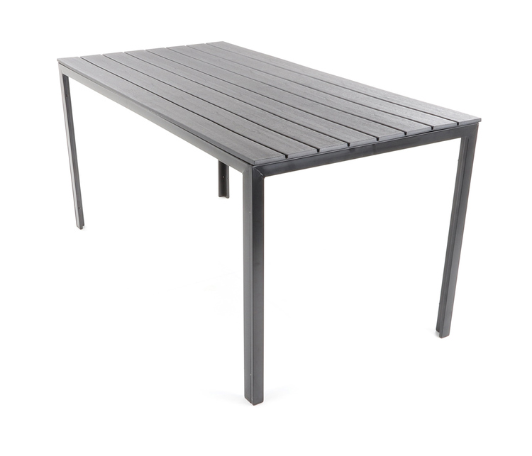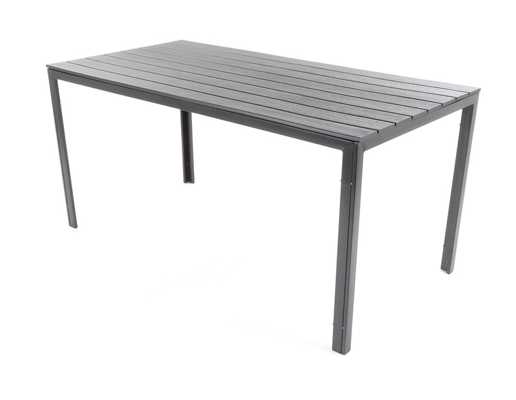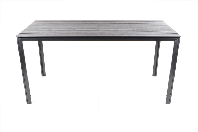 Stůl je zhotoven z ocelových profilů povrchově dokončenkomaxitovou barvou. Deska stolu je v imitaci masivního dřevaz lisovaného plastu s UV filtrem.