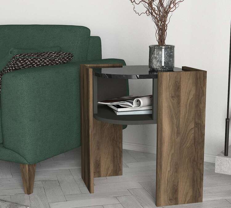 Představujeme vám – elegantní a luxusní příruční stolek, který je dokonalým doplňkem pro váš obývací pokoj. Tento stolek je vyroben z kvalitního LTD materiálu a vyniká kombinací ořechu a mramoru, což mu dodává sofistikovaný a přitažlivý vzhled.