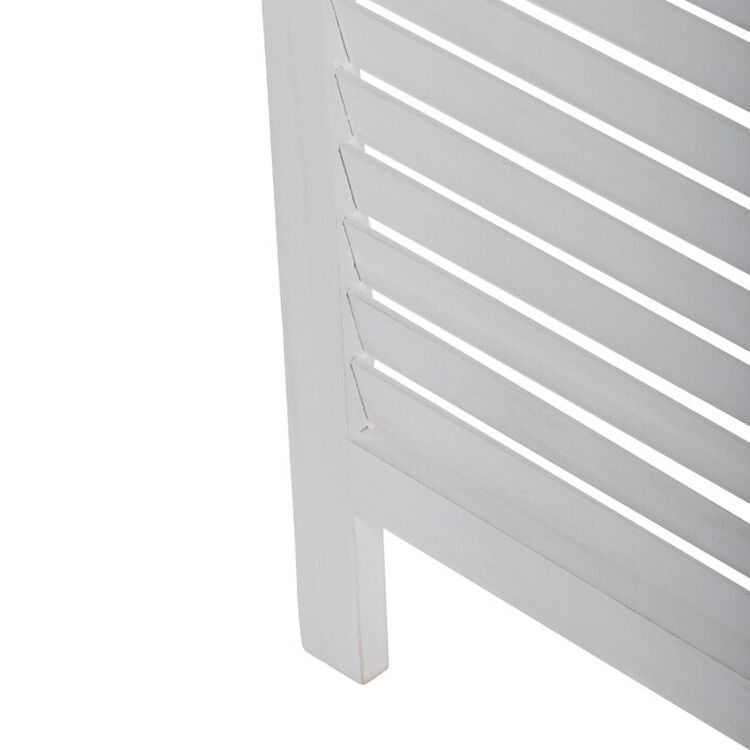 Třípanelový paraván vyrobený z masivního smrkového dřeva v bílé barvě nabízí praktické řešení pro rozdělení prostoru v interiéru. Každý díl je doplněn dekorativními výřezy v horní části, které propouštějí světlo a zároveň zachovávají soukromí. Masivní materiál zajišťuje pevnost a stabilitu,... více informací o zboží