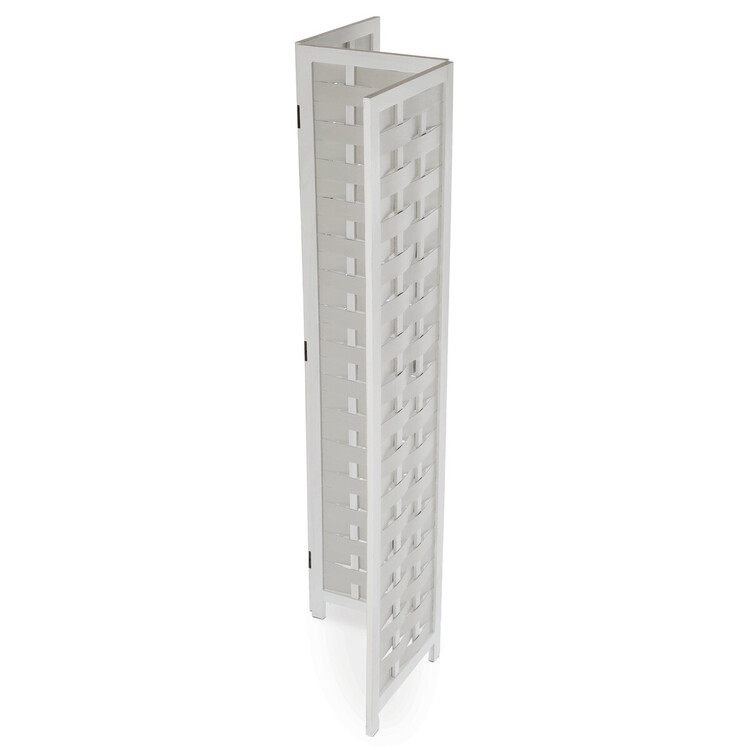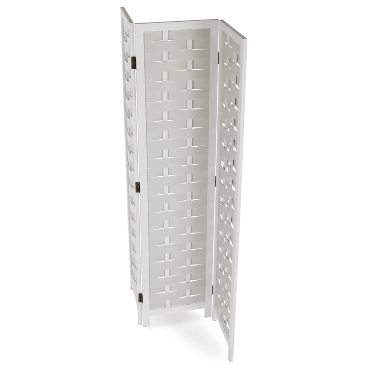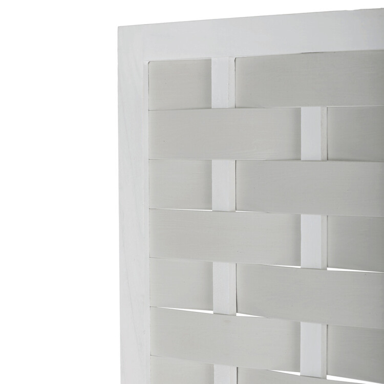 Třídílný paraván vyrobený z masivního smrkového dřeva v bílé barvě nabízí praktické řešení pro rozdělení prostoru i dekorativní doplněk interiéru. Každá z částí je spojena kovovými panty, které umožňují snadné skládání a nastavení úhlu podle potřeby. Povrchová úprava zdůrazňuje přirozenou strukturu dřeva a zároveň usnadňuje údržbu. Paraván je stabilní a díky masivnímu provedení navržen pro dlouhou životnost. Je vhodný do různých typů interiérů, kde přispívá k vytvoření soukromí nebo optickému oddělení zón. Rozměr jednoho dílu 40×171cm.