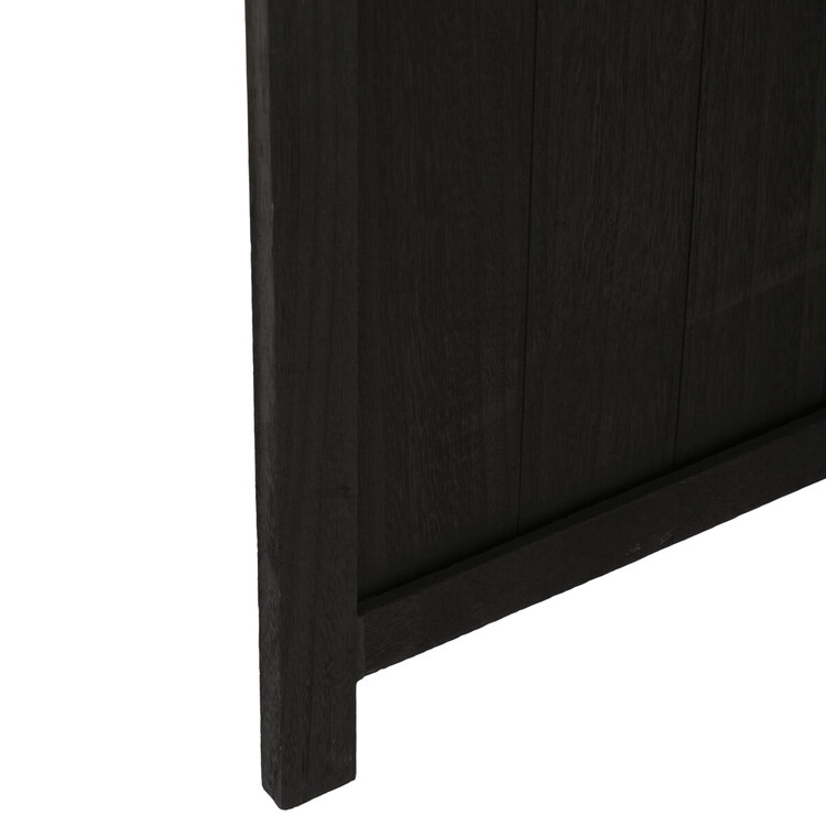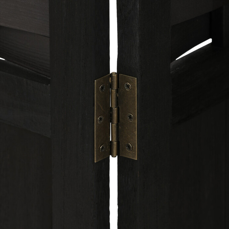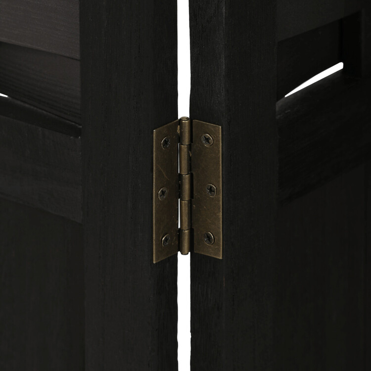 Třídílný paraván z masivního smrkového dřeva v černém provedení nabízí praktické řešení pro rozdělení prostoru s výrazným přírodním dekorem. Horní část tvoří propletené lamely, které propouštějí světlo a zároveň zajišťují dostatečnou míru soukromí, spodní část je tvořena plnou deskou s viditelnou strukturou dřeva. Pevné panty umožňují snadné skládání a přizpůsobení úhlu rozložení podle potřeby. Povrchová úprava v černé barvě podtrhuje výraznou texturu dřeva a usnadňuje údržbu. Paraván je vhodný pro použití v interiérech, kde je potřeba opticky oddělit části místnosti nebo vytvořit dekorativní prvek.